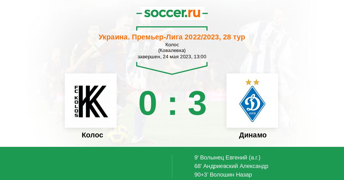 Протокол матча Колос против Динамо
