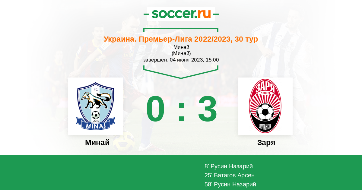 Протокол матча Минай против Заря