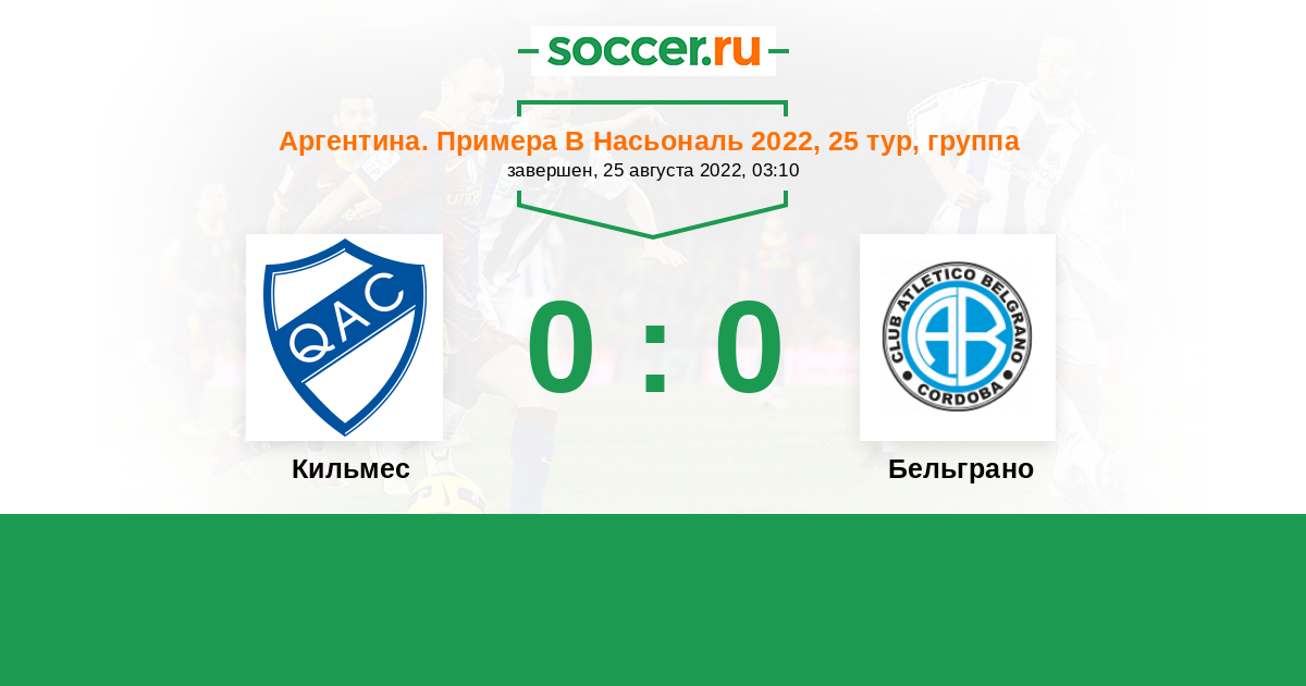 Протокол матча Кильмес против Бельграно