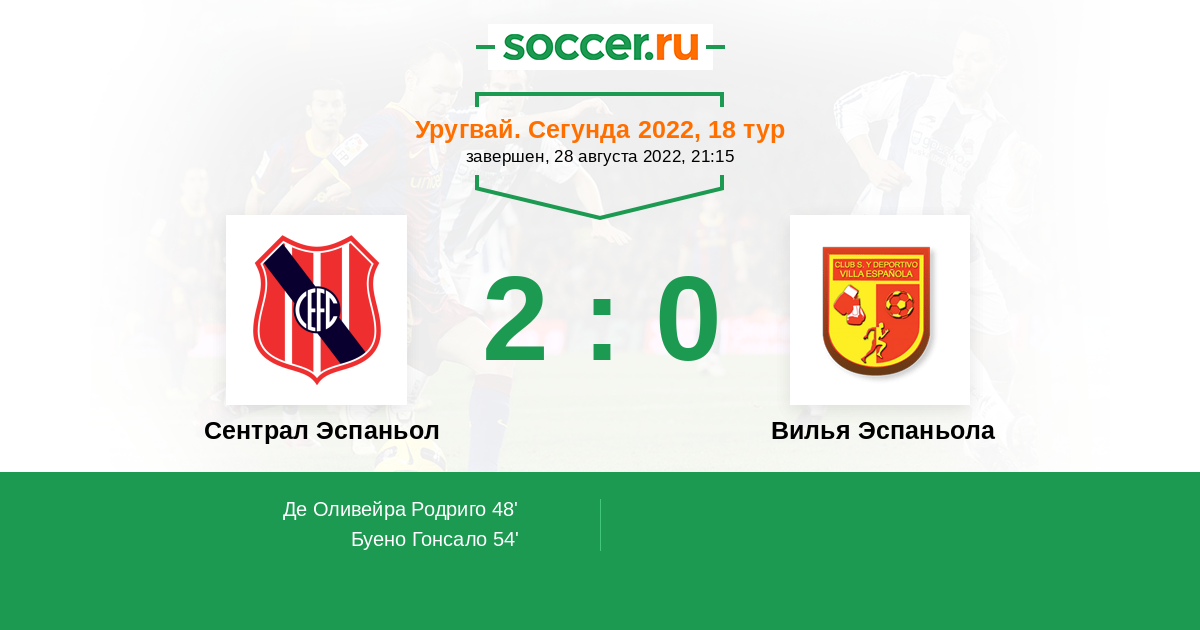 Протокол матча Сентрал Эспаньол против Вилья Эспаньола