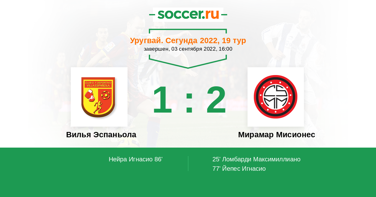 Протокол матча Вилья Эспаньола против Мирамар Мисионес