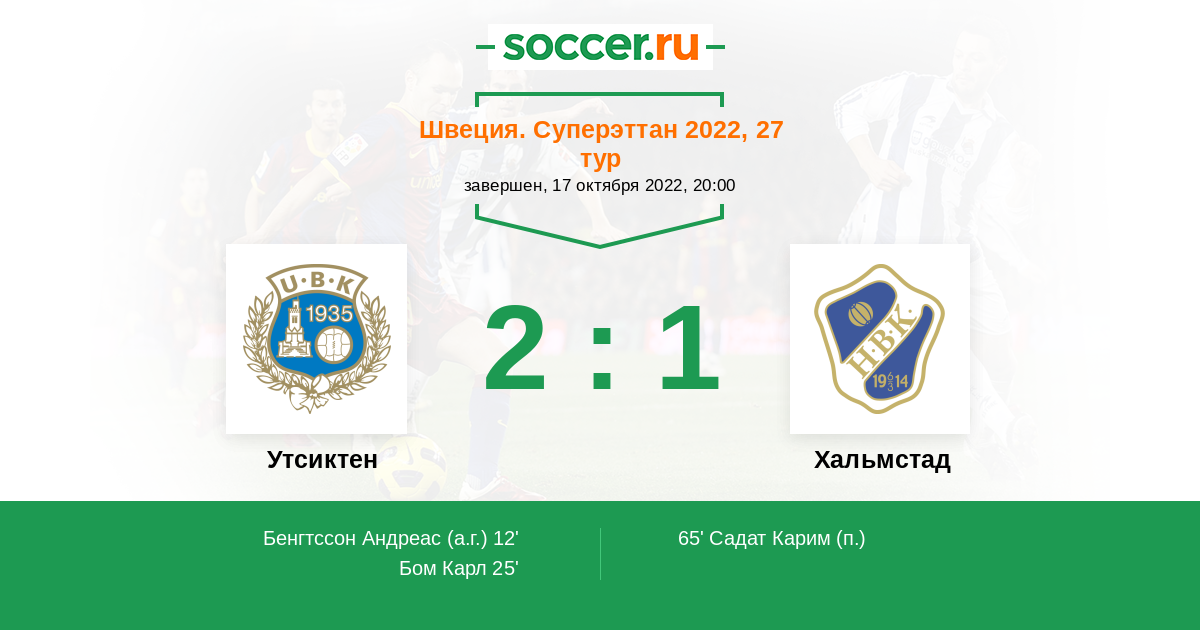 12' (1:0) Автогол Бенгтссон Андреас (21)