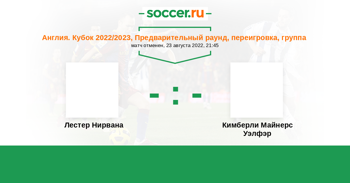 История матча Лестер Нирвана против Кимберли Майнерс Уэлфэр