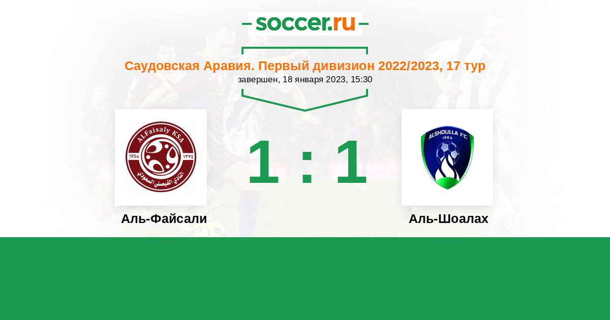 Ну здесь даже к бабке гадалке не ходить , победа команды хозяев поля Аль - Файсали , которые являются лидерами . А вот команда гостей Аль - Шоалах явный аутсайдер .