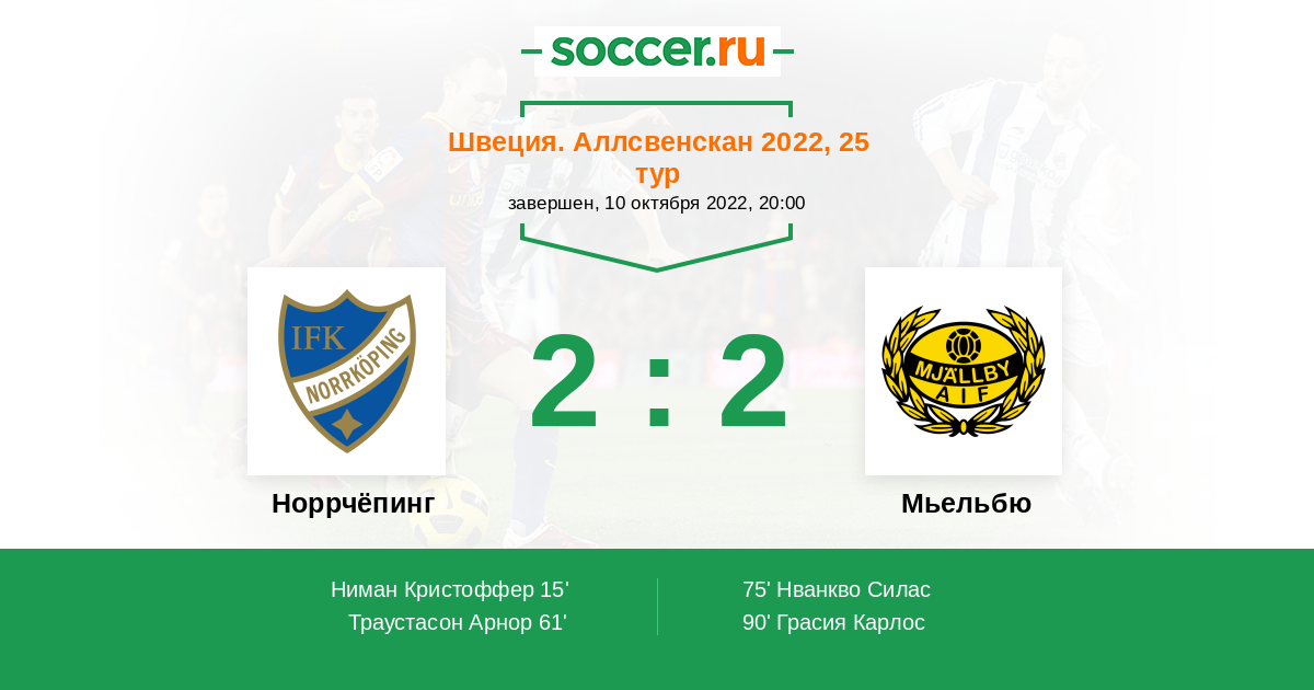 Протокол матча Норрчёпинг против Мьельбю