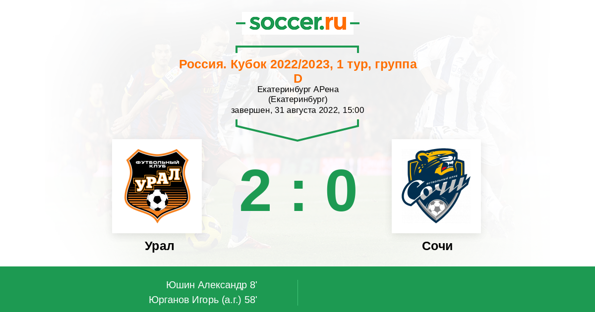 Не смотря на то, что "Урал" в чемпионате страны терпит катастрофу, я думаю, что начать кубковый сезон екатеринбуржцы смогут достойно. Сочинцы очень слабо проводят выездные матчи. Думаю, что и сегодня ничего в этом не изменится.