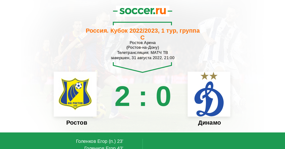 Протокол матча Ростов против Динамо
