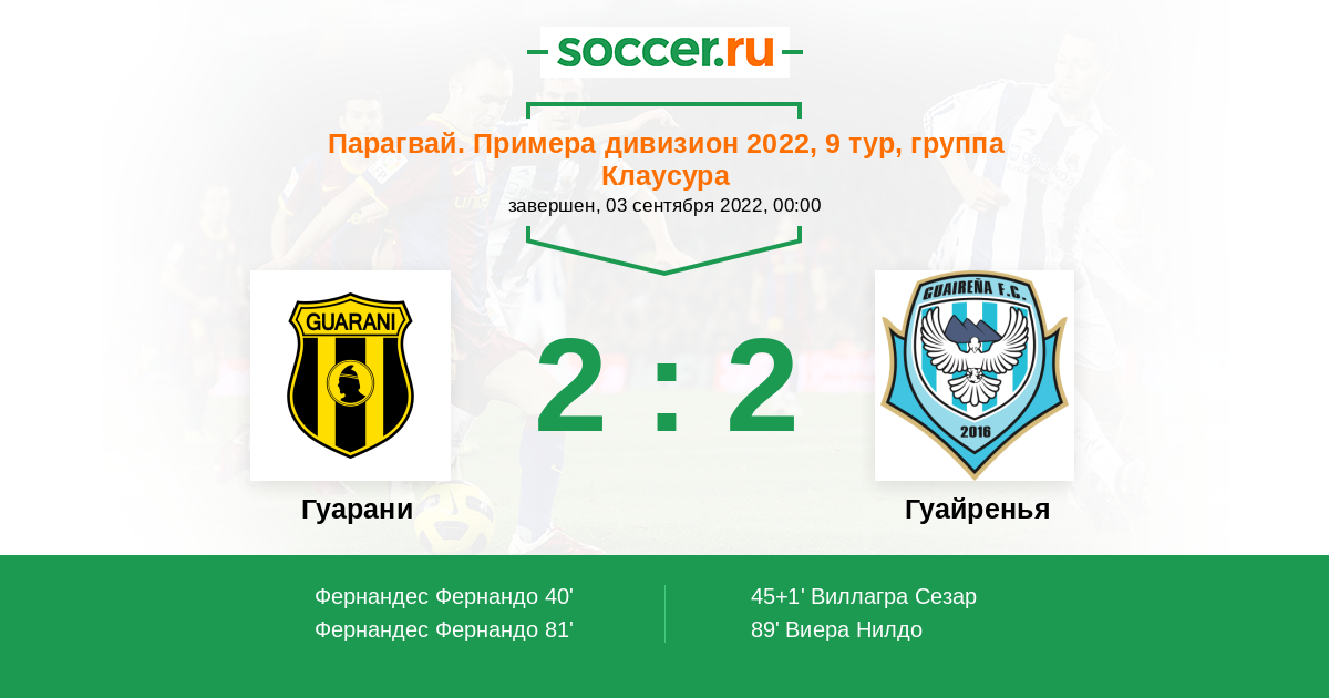 Протокол матча Гуарани против Гуайренья