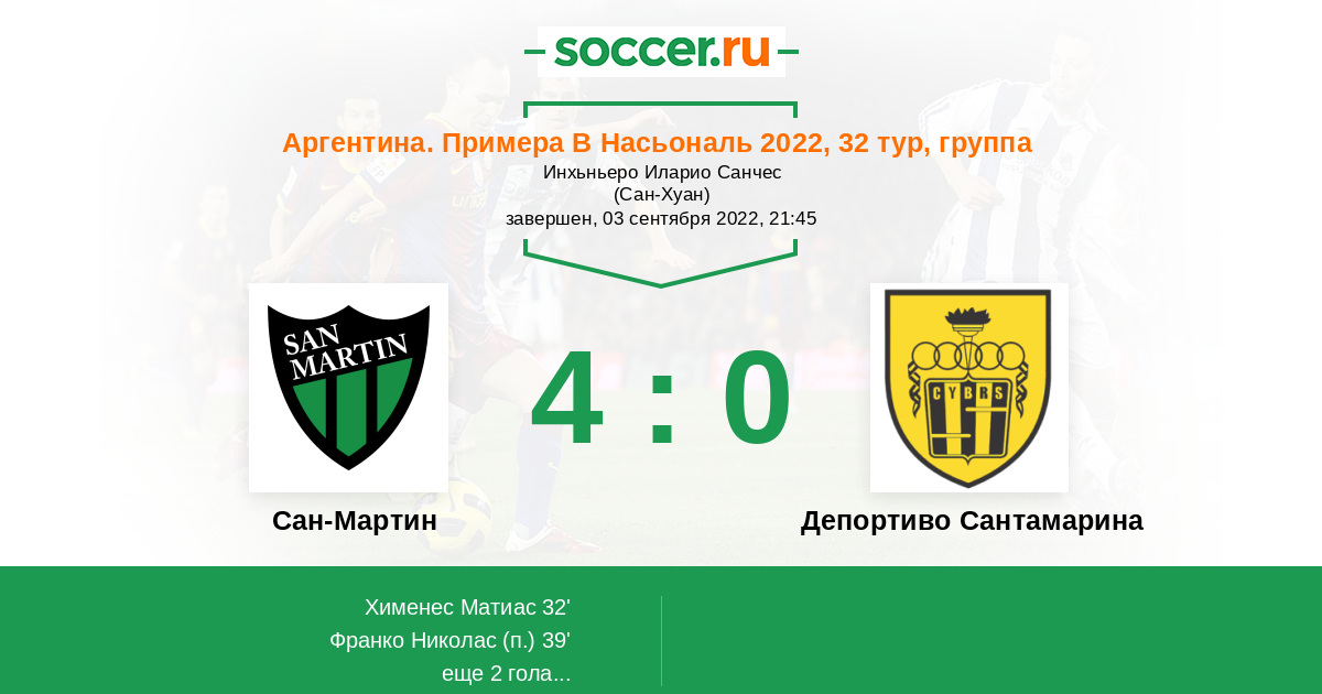 Протокол матча Сан-Мартин против Депортиво Сантамарина