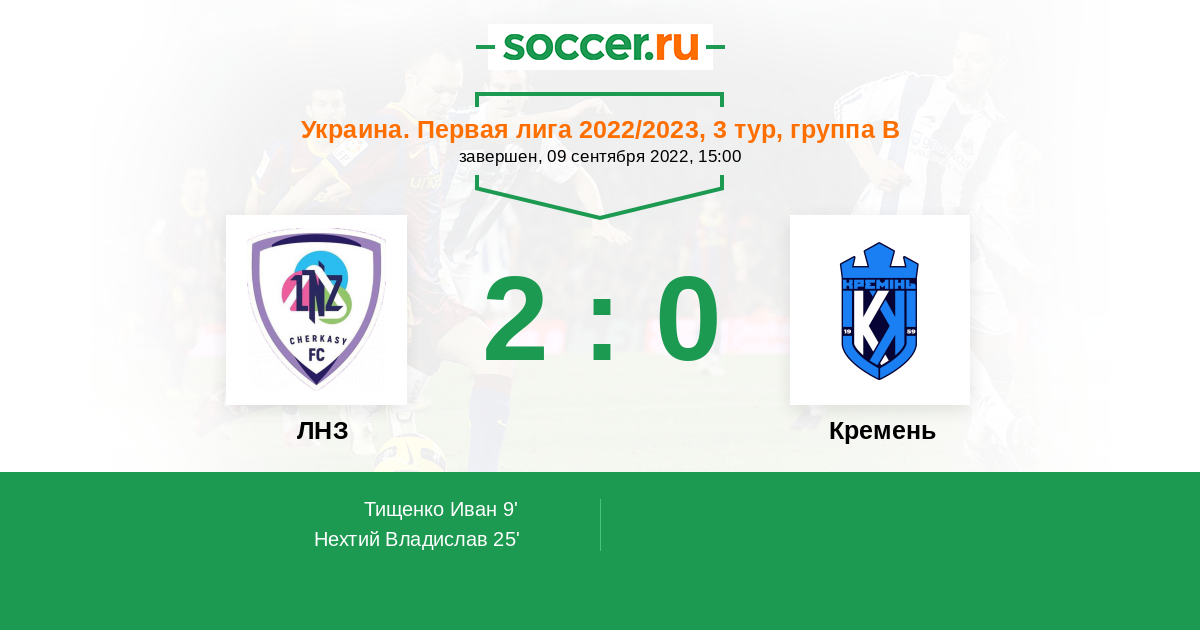 Протокол матча ЛНЗ против Кремень