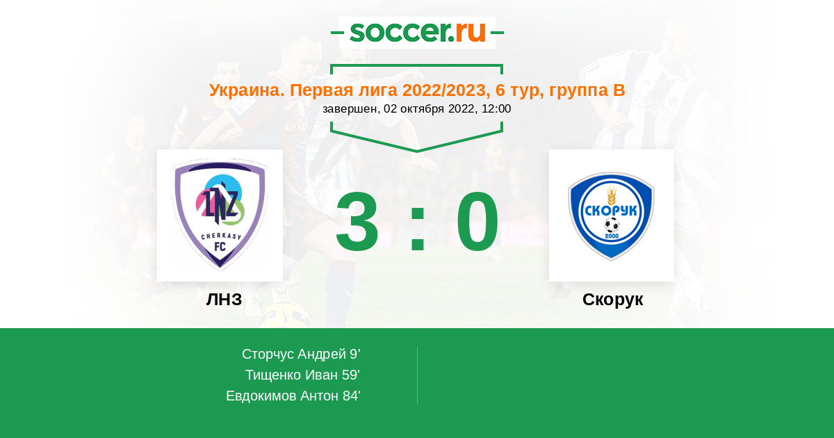 Протокол матча ЛНЗ против Скорук