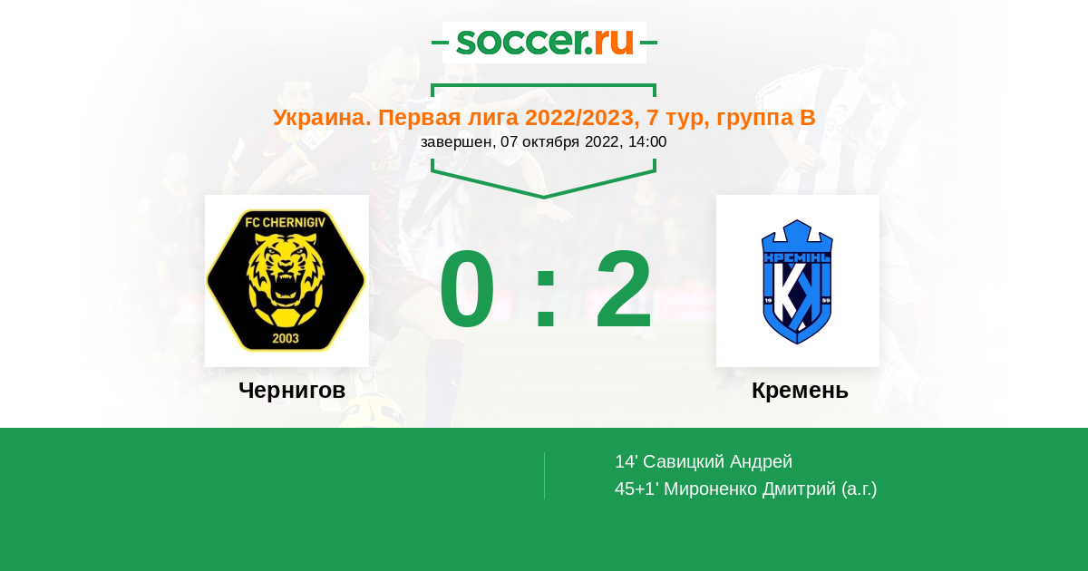 Протокол матча Чернигов против Кремень