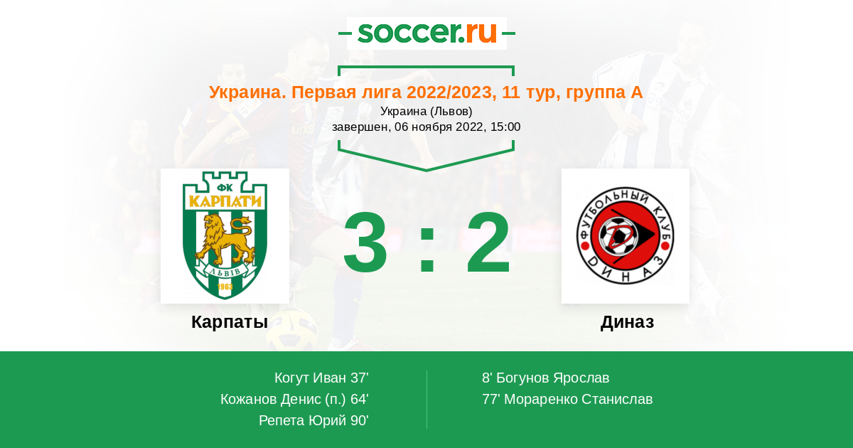 Протокол матча Карпаты против Диназ