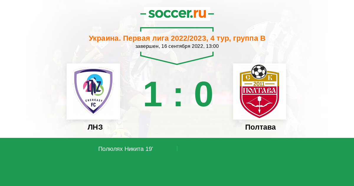 Протокол матча ЛНЗ против Полтава