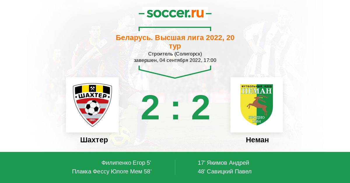 Протокол матча Шахтер против Неман