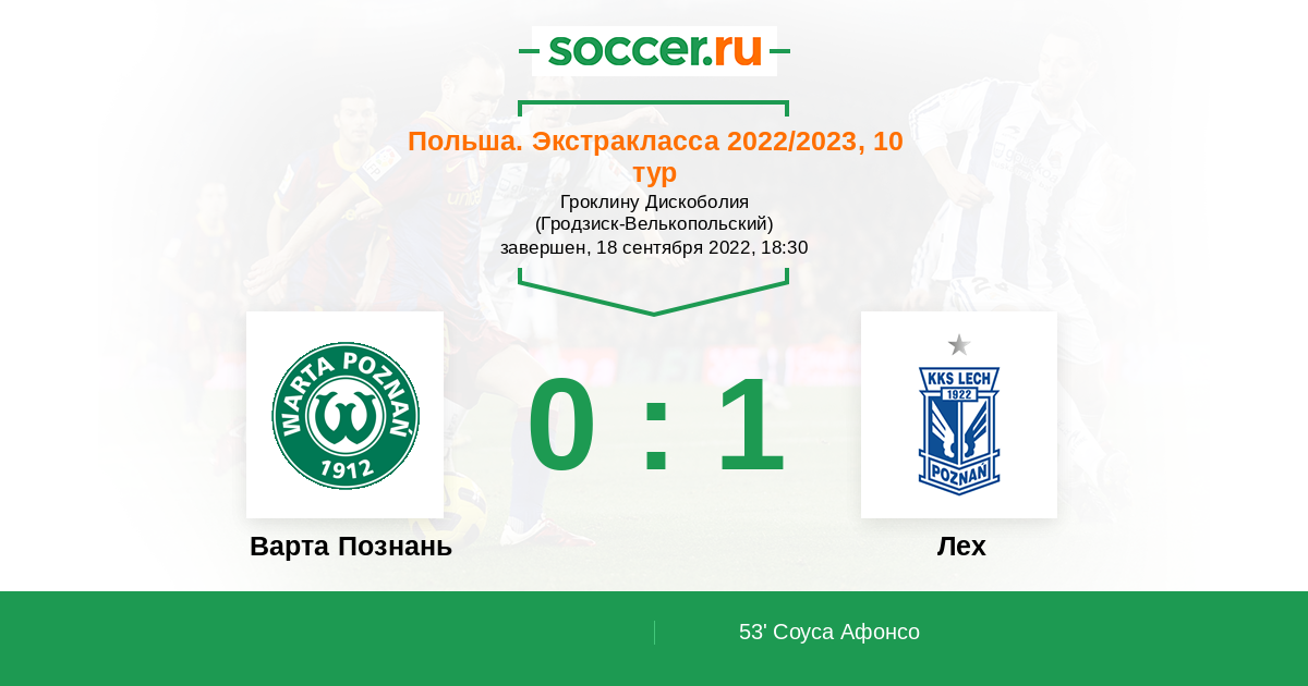 Протокол матча Варта Познань против Лех