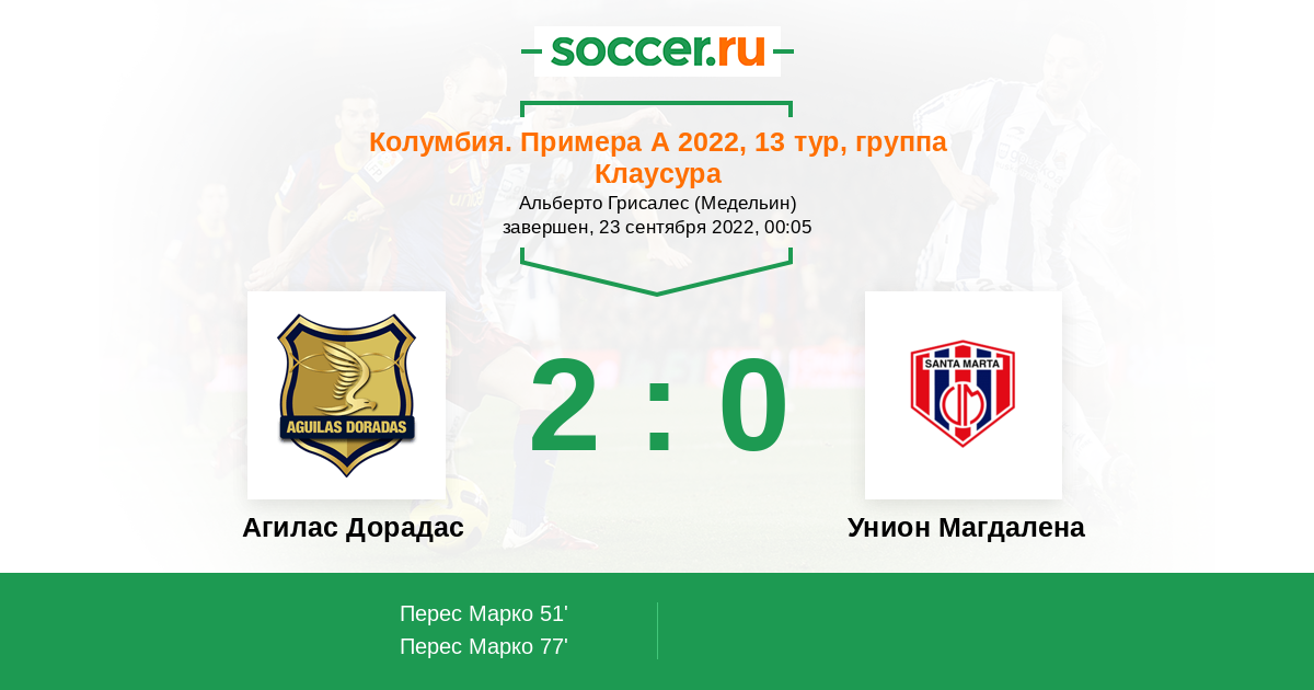 Протокол матча Агилас Дорадас против Унион Магдалена