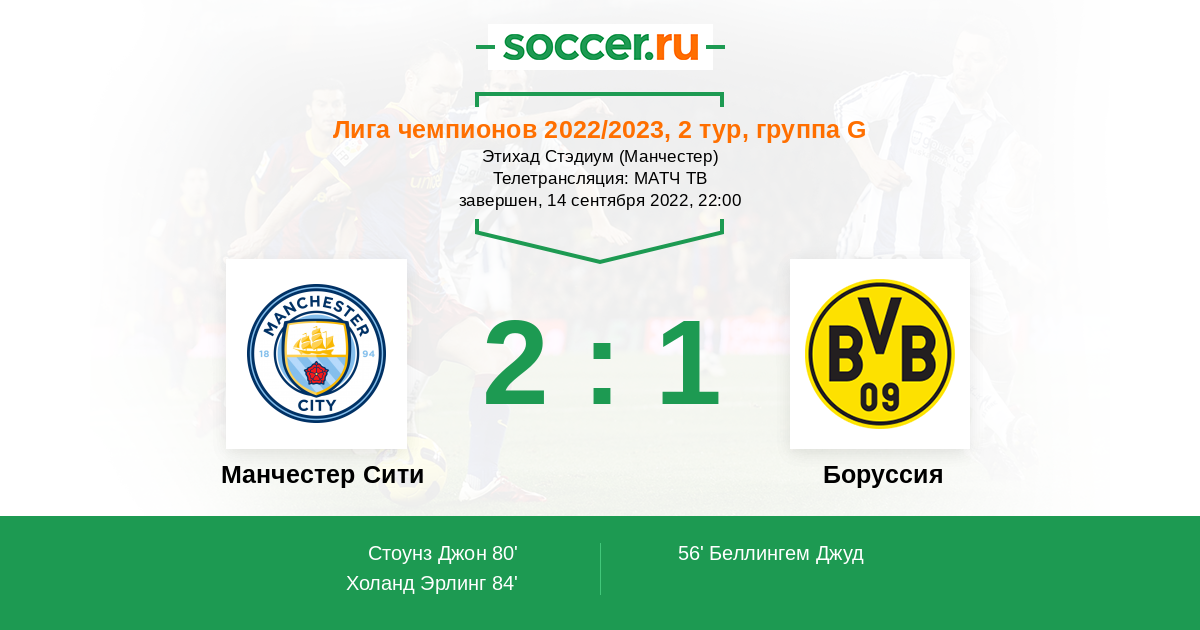 Протокол матча Манчестер Сити против Боруссия