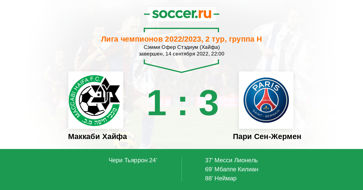 Протокол матча Маккаби Хайфа против Пари Сен-Жермен