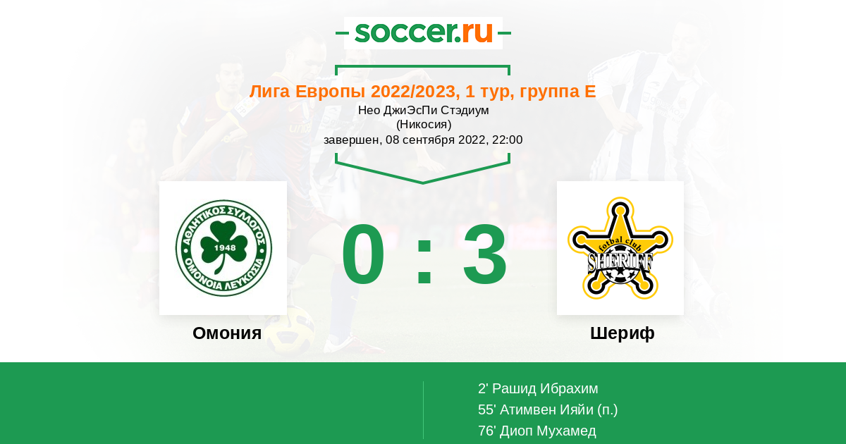 Протокол матча Омония против Шериф