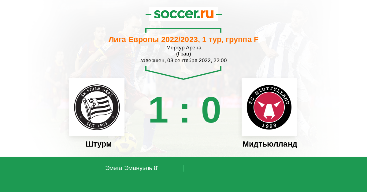 Протокол матча Штурм против Мидтьюлланд