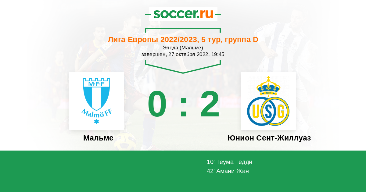 Протокол матча Мальме против Юнион Сент-Жиллуаз
