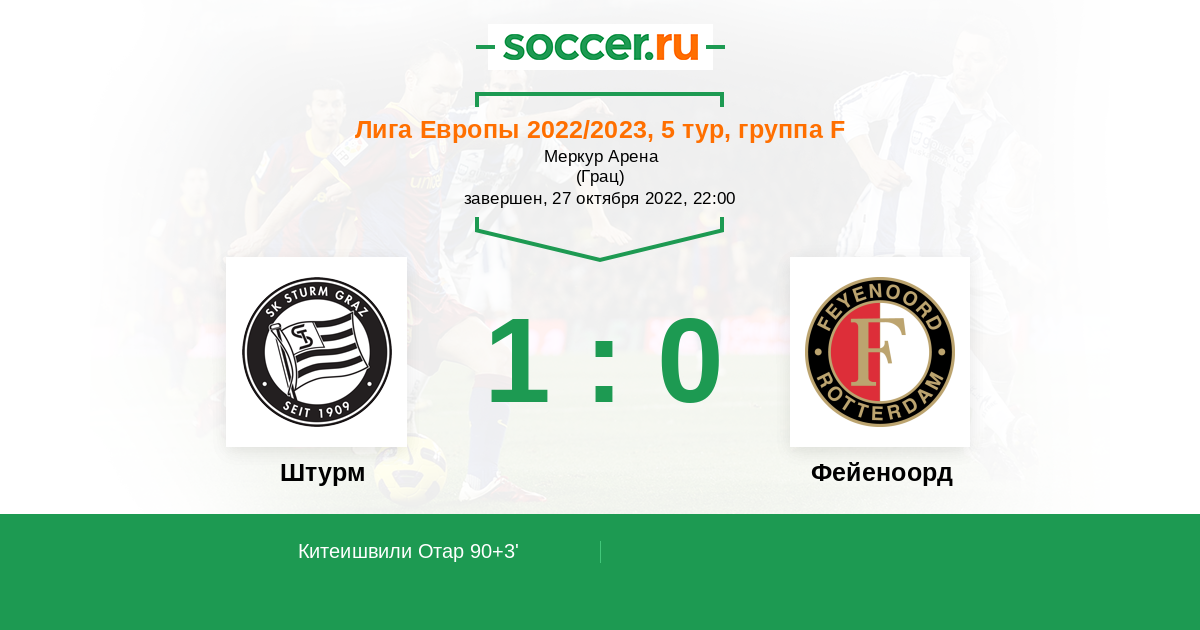 Протокол матча Штурм против Фейеноорд
