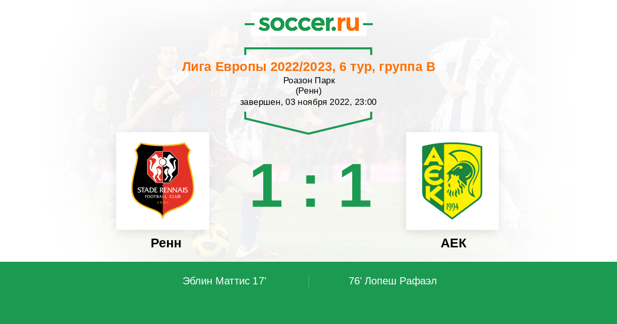 17' (1:0) Эблин Маттис (28) (Буриго Бенжамен (14))