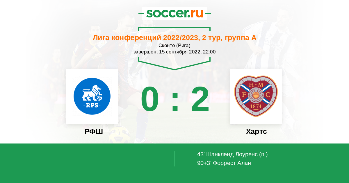 Протокол матча РФШ против Хартс