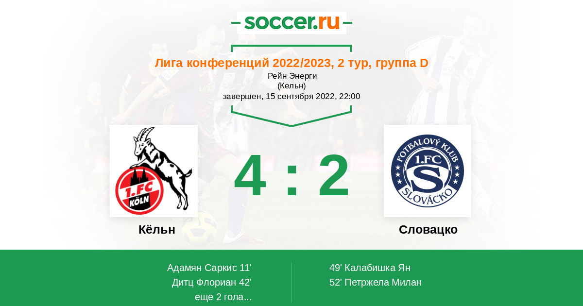 Протокол матча Кёльн против Словацко
