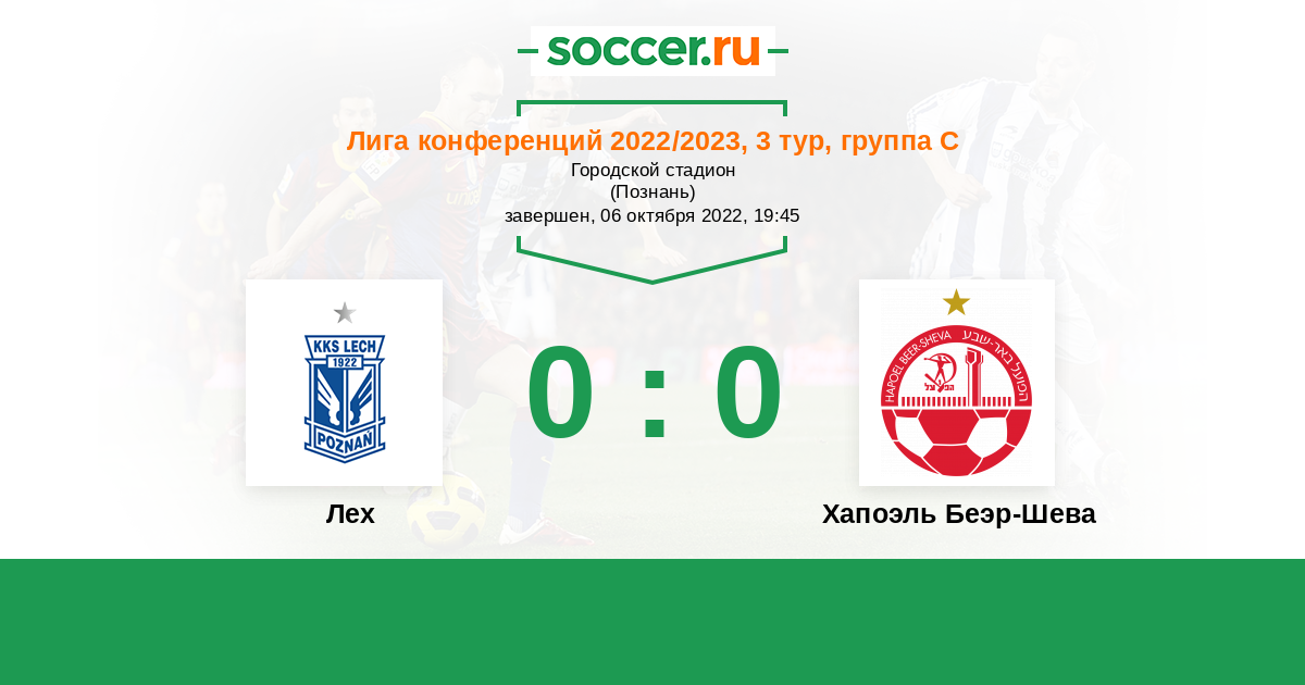 Протокол матча Лех против Хапоэль Беэр-Шева