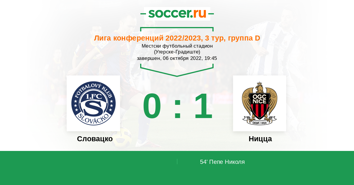 Протокол матча Словацко против Ницца