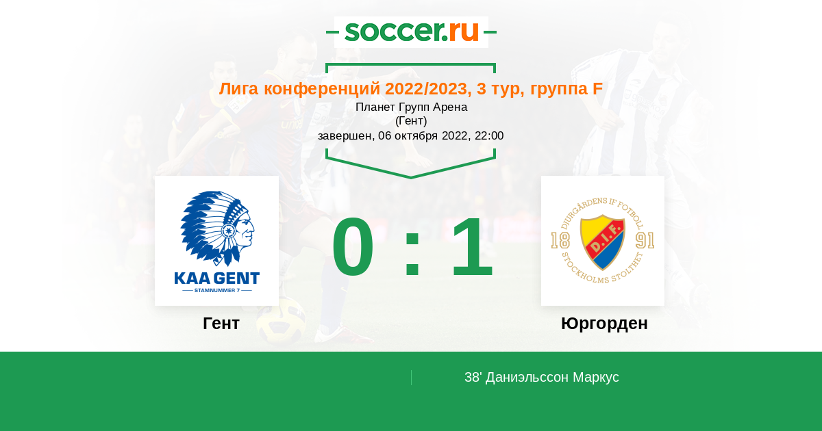 38' (0:1) Даниэльссон Маркус (33) (Эрикссон Магнус (7))