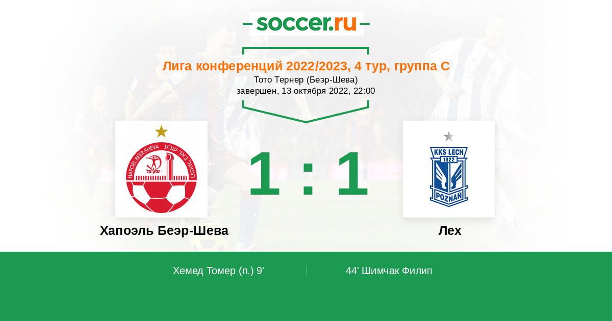 Протокол матча Хапоэль Беэр-Шева против Лех