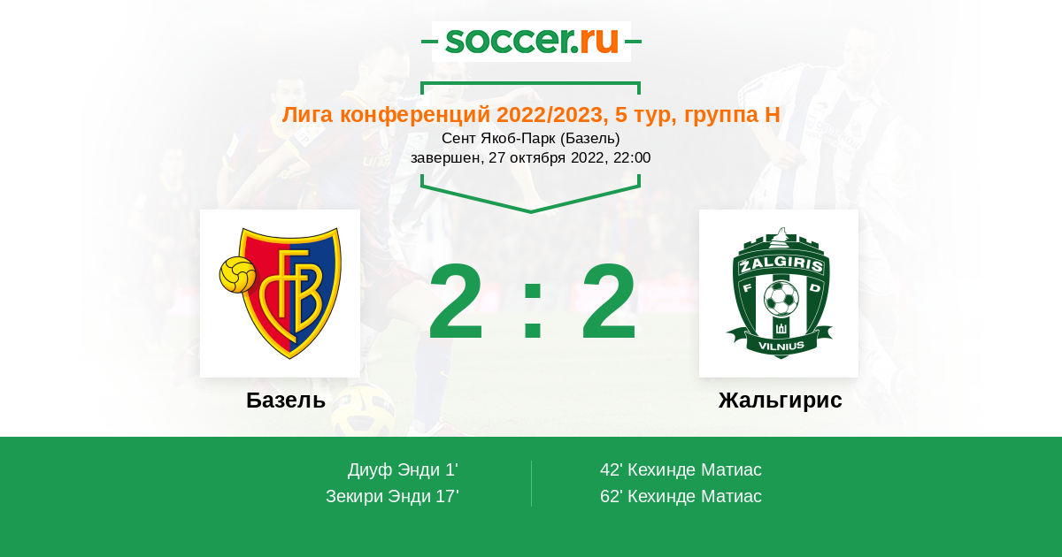 Протокол матча Базель против Жальгирис
