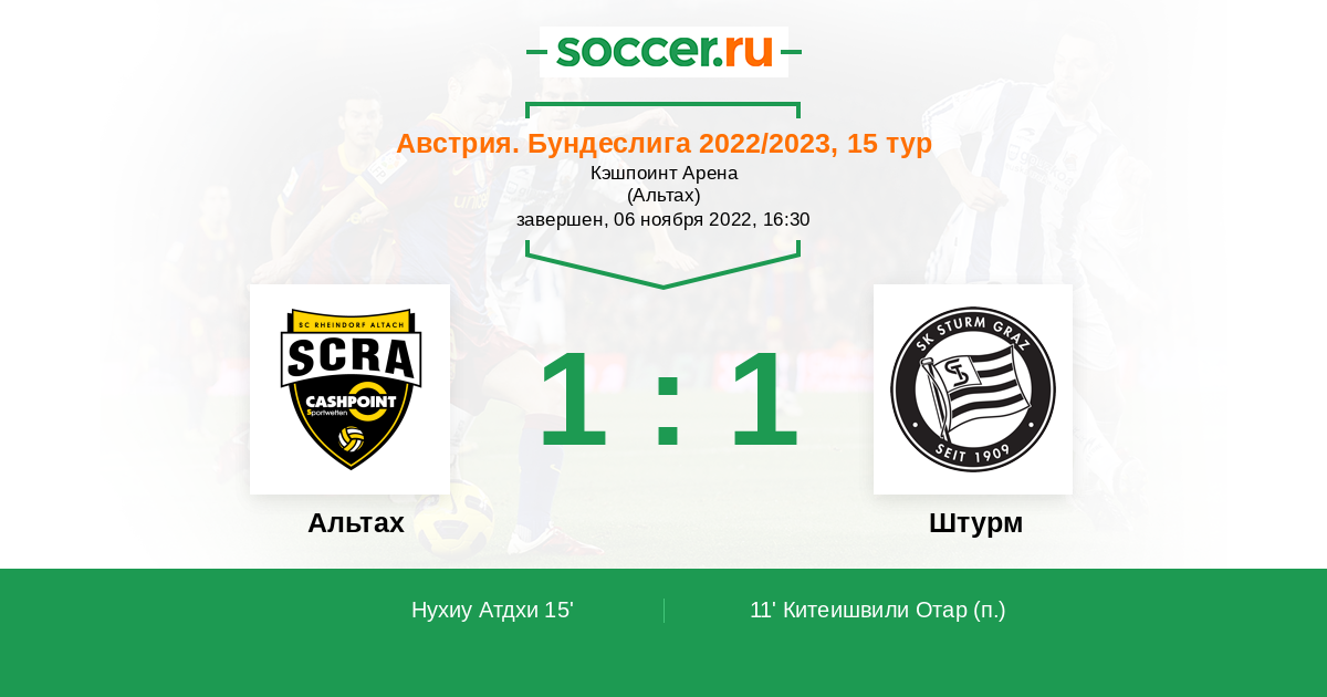Протокол матча Альтах против Штурм