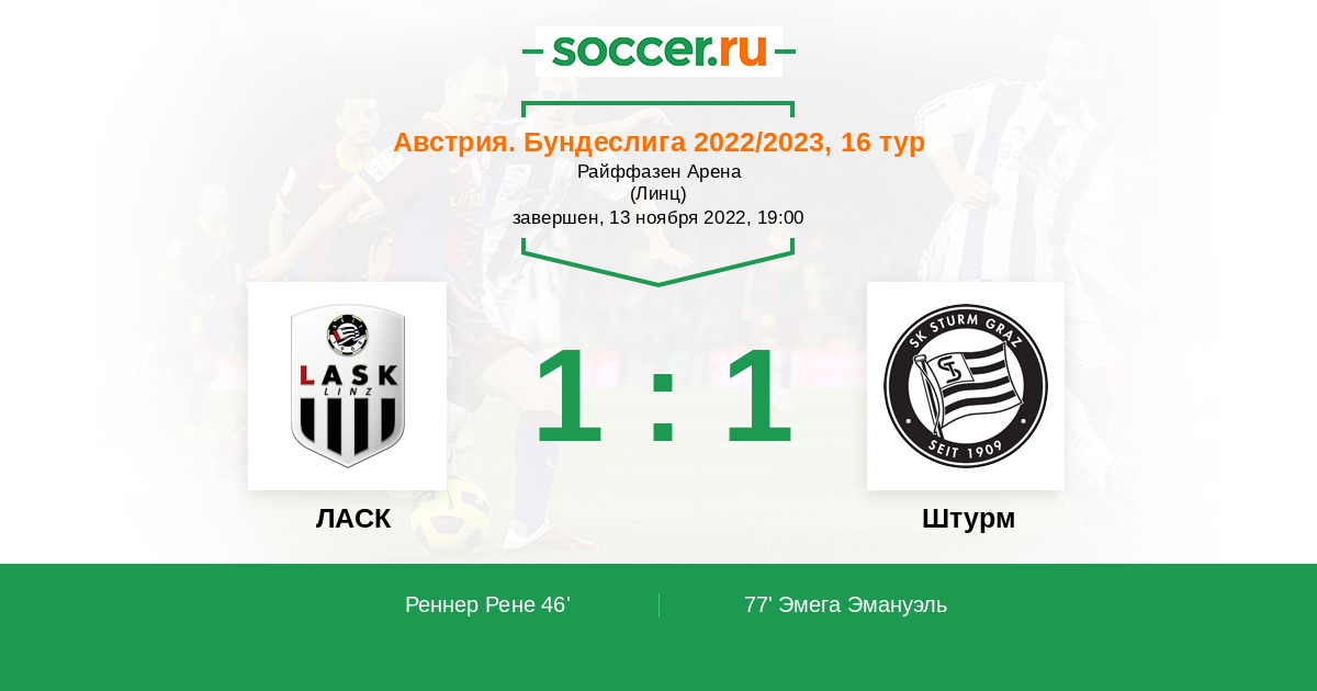 Протокол матча ЛАСК против Штурм