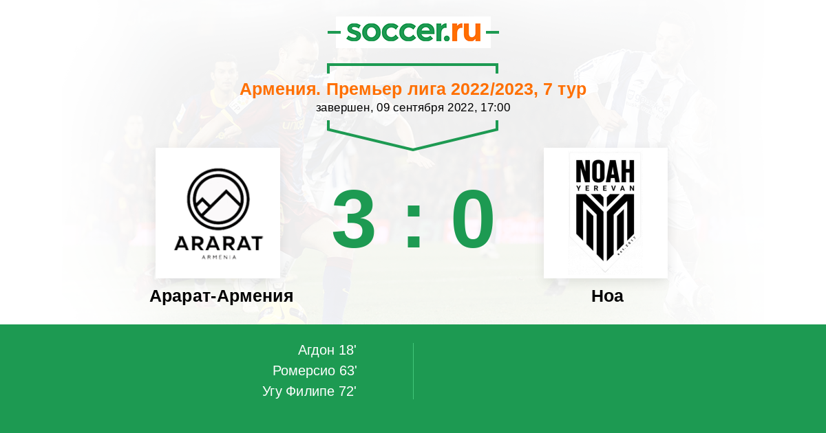 Протокол матча Арарат-Армения против Ноа
