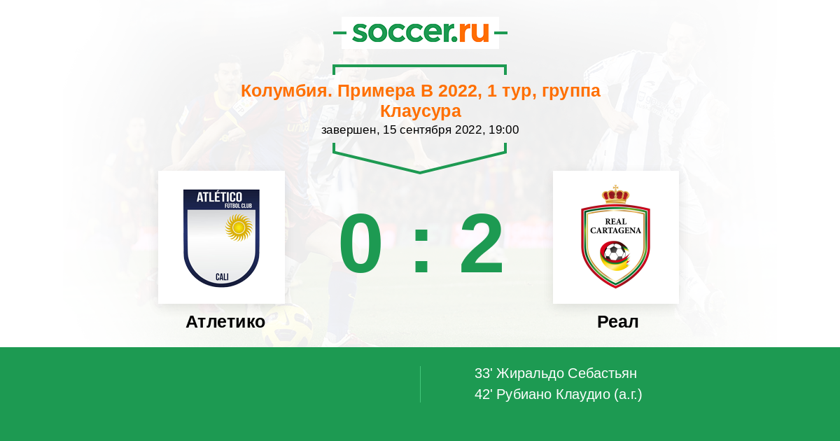 Протокол матча Атлетико Кали против Реал