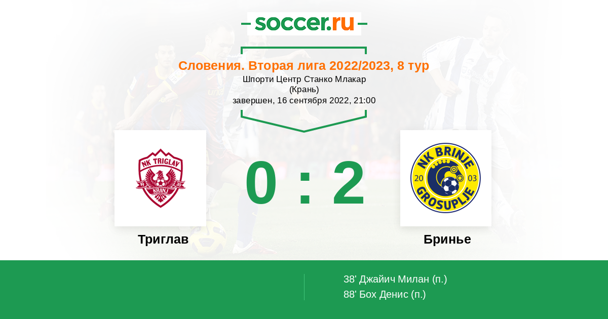 Протокол матча Триглав против Бринье