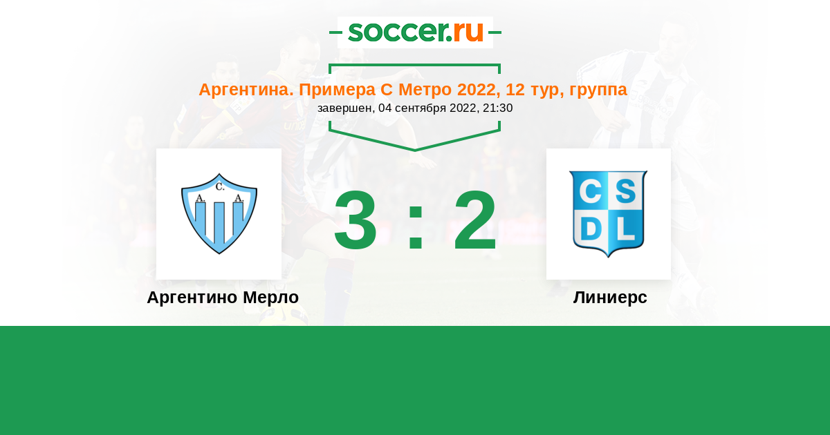 Аргентина. Примера С Метро 29.04.2022 Линиерс Логотип футбольный клуб Линиерс (Ла-Матанса) 1:0 Логотип футбольный клуб Аргентино Мерло Аргентино Мерло