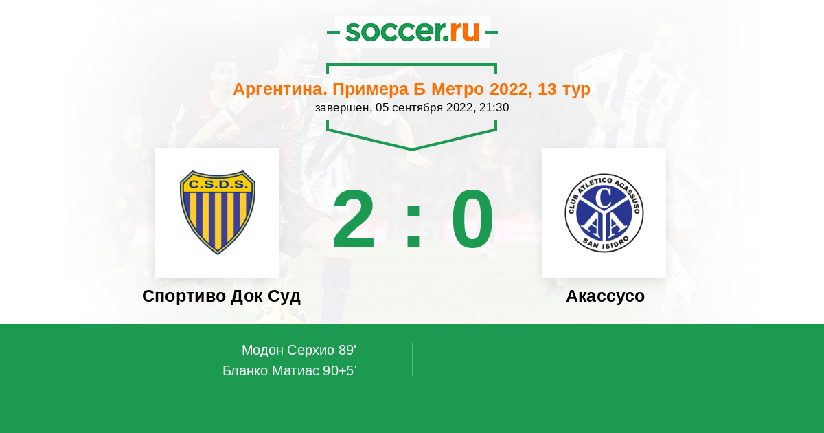 Протокол матча Спортиво Док Суд против Акассусо