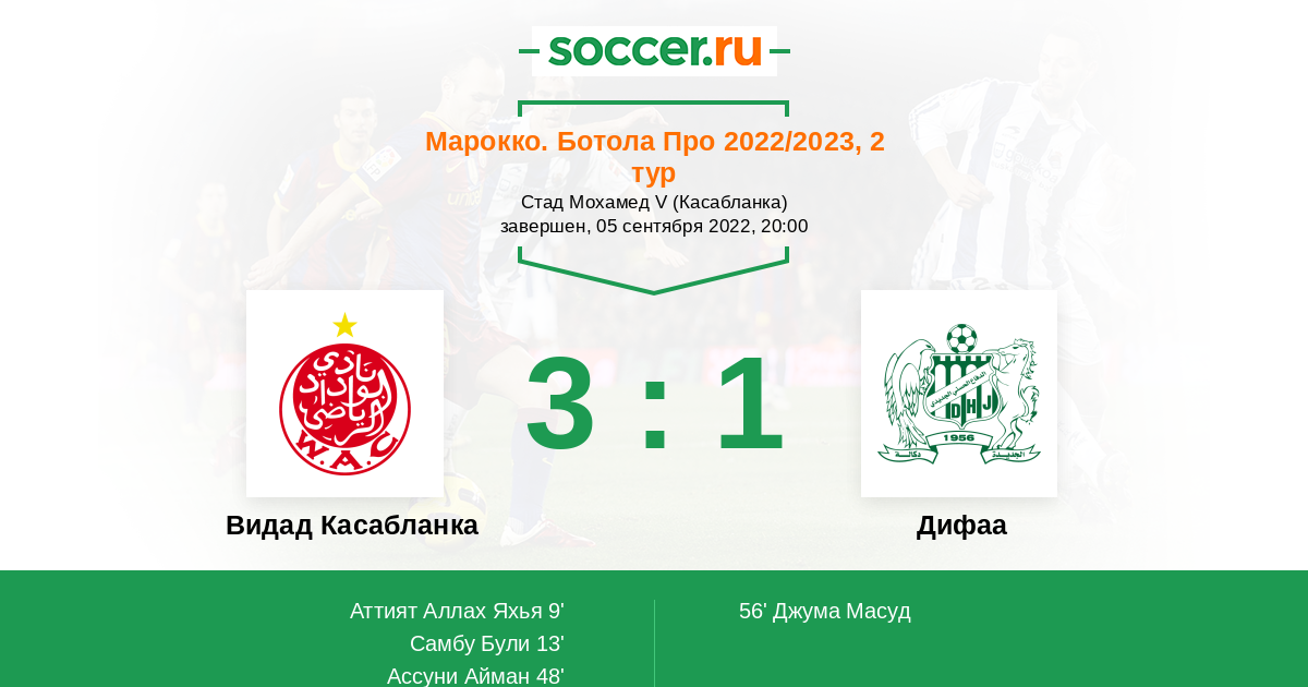 Протокол матча Видад Касабланка против Дифаа