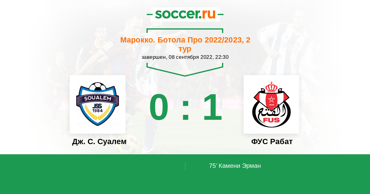 Протокол матча Дж. С. Суалем против ФУС Рабат