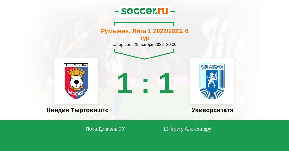 Протокол матча Киндия Тырговиште против Университатя Крайова