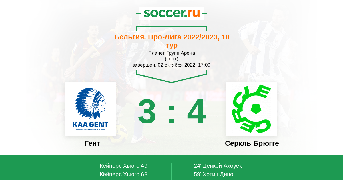Протокол матча Гент против Серкль Брюгге