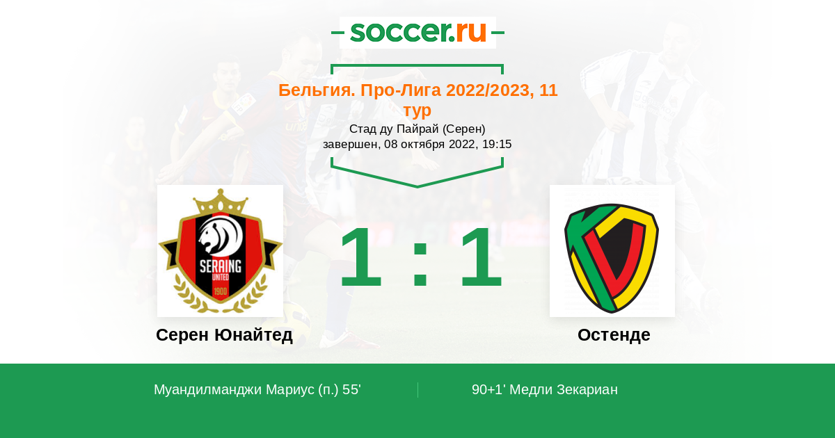 Протокол матча Серен Юнайтед против Остенде