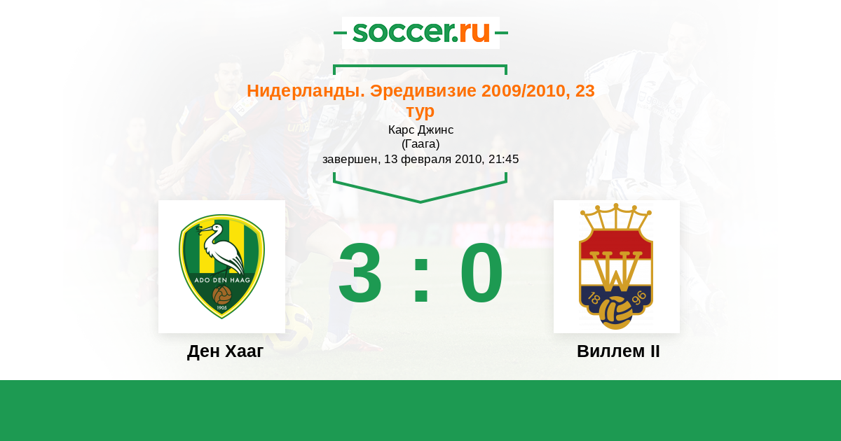 Нидерланды. Эредивизи 22.11.2009 Виллем II Логотип футбольный клуб Виллем II (Тилбург) 1:1 Логотип футбольный клуб Ден Хааг (Гаага) Ден Хааг