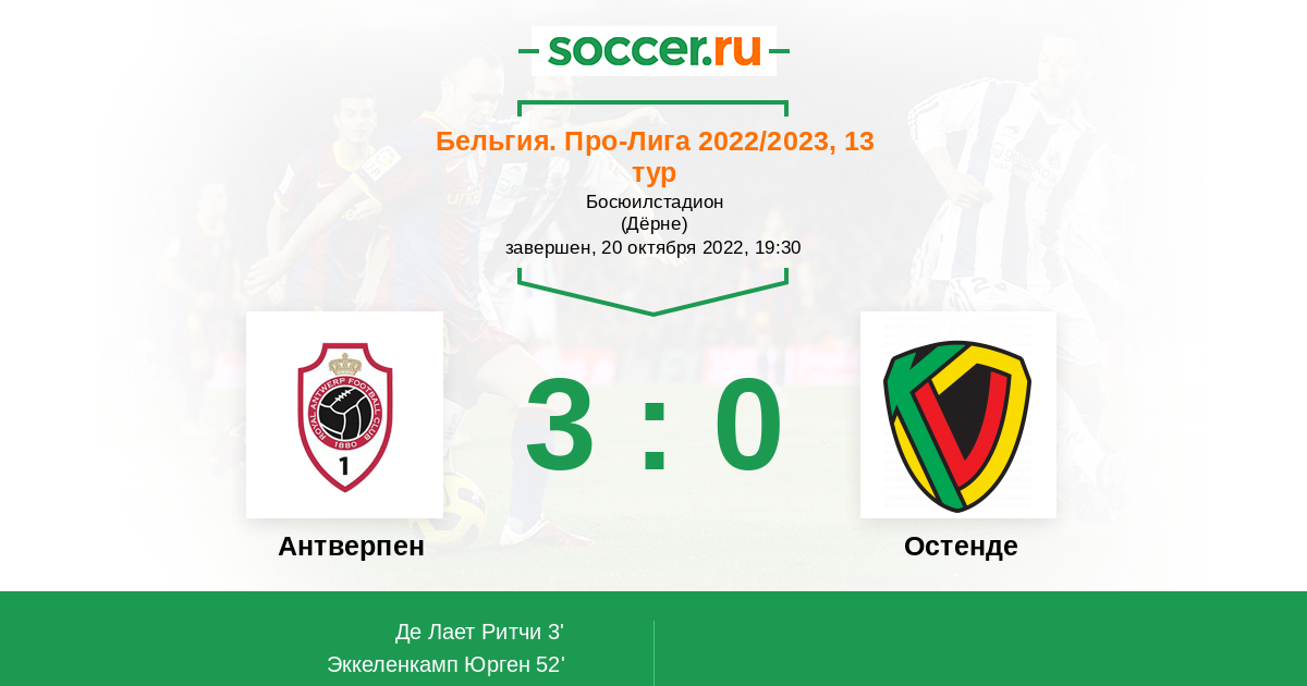 Протокол матча Антверпен против Остенде