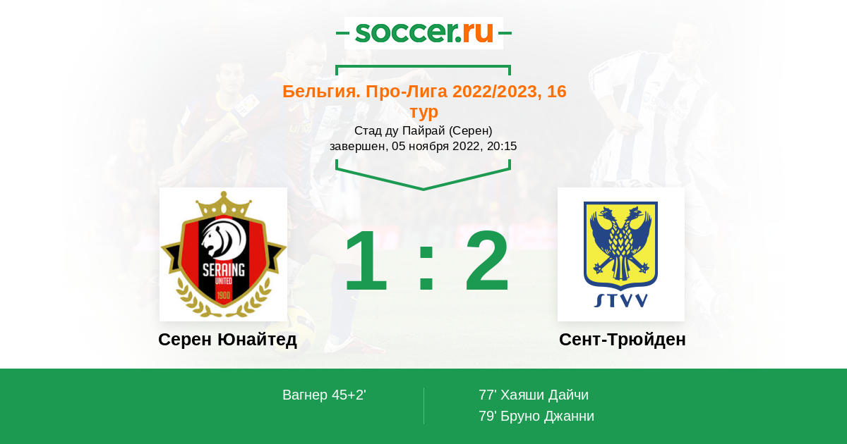 Протокол матча Серен Юнайтед против Сент-Трюйден